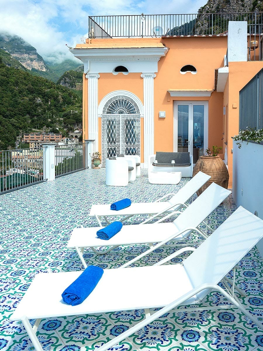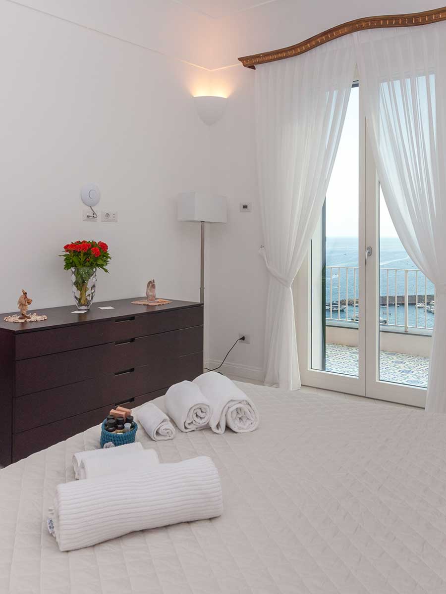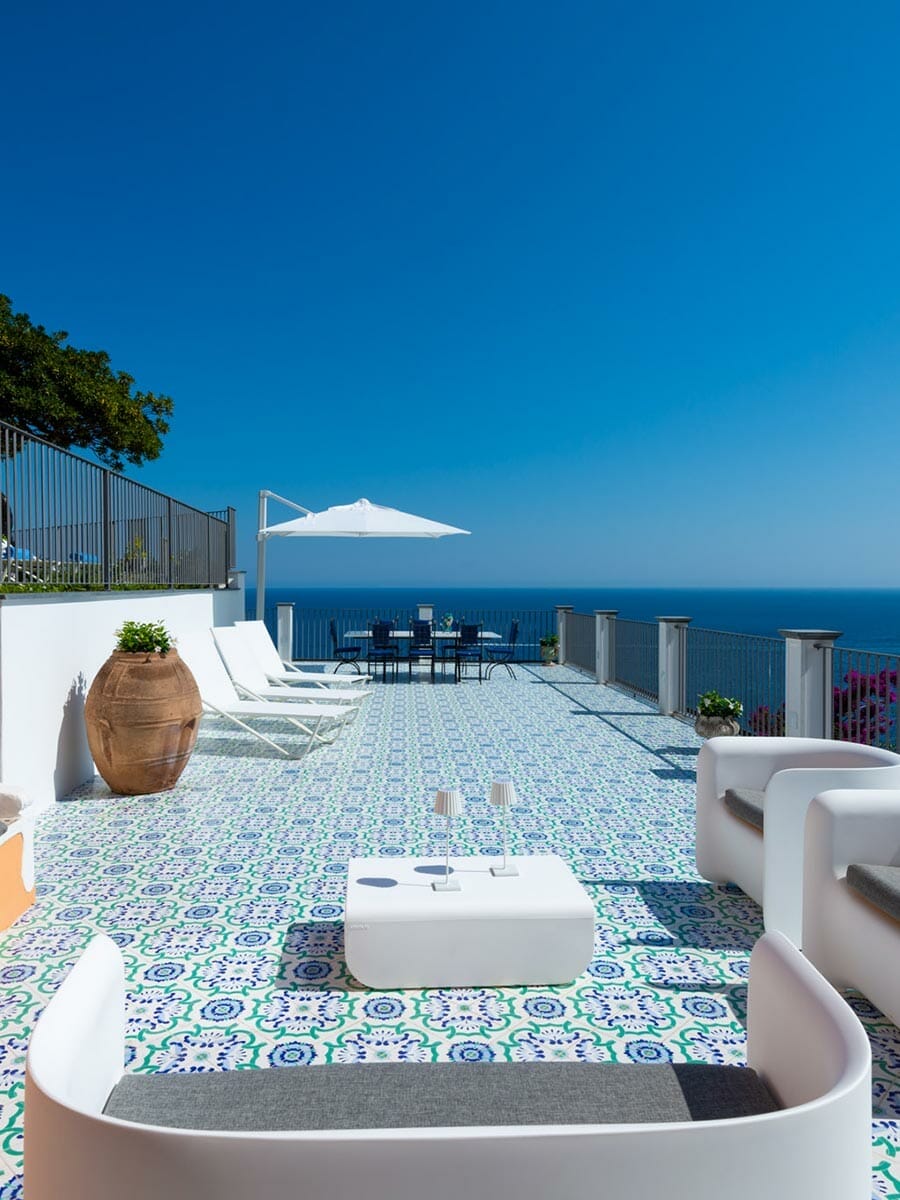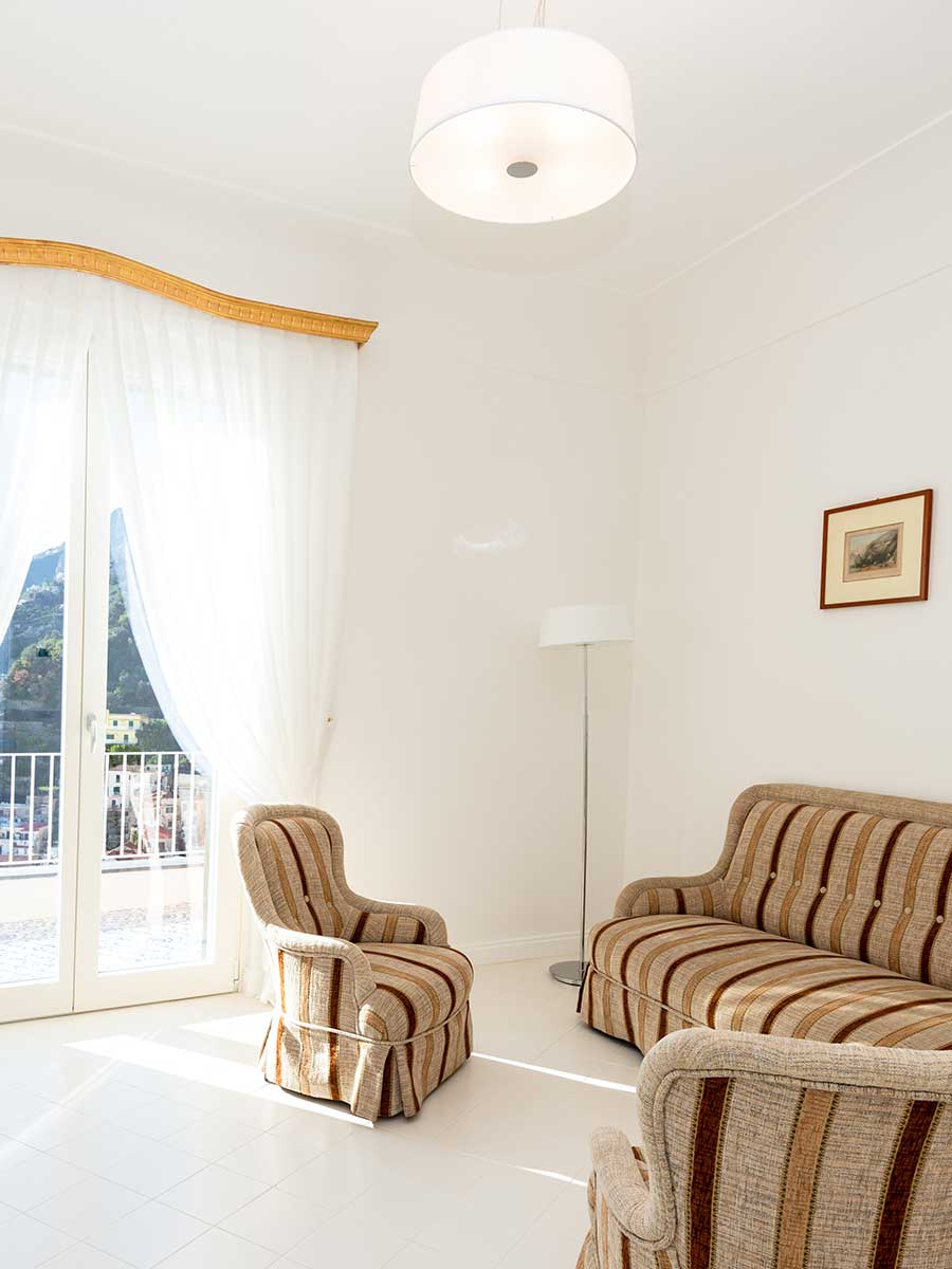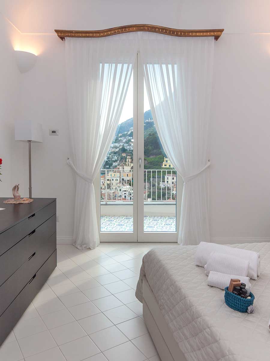 The largest terrace is approximately 150 square meters. It is equipped with tables, chairs , armchairs and sun umbrellas. From the terrace you will enjoy the stunning view of the sea, of the coast and of Amalfi town center with its gorgeous St.Andrew’s Cathedral.