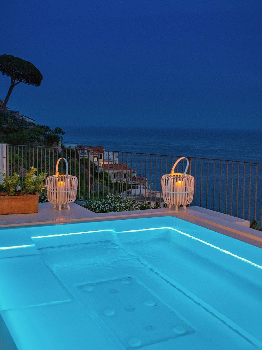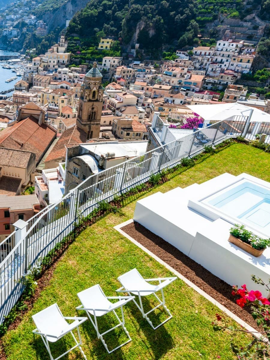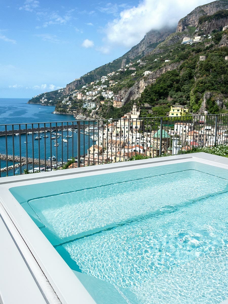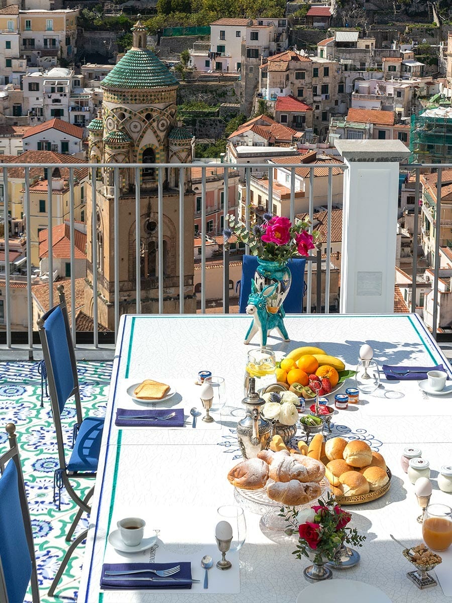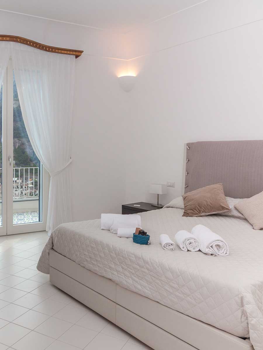 The largest terrace is approximately 150 square meters. It is equipped with tables, chairs , armchairs and sun umbrellas. From the terrace you will enjoy the stunning view of the sea, of the coast and of Amalfi town center with its gorgeous St.Andrew’s Cathedral.